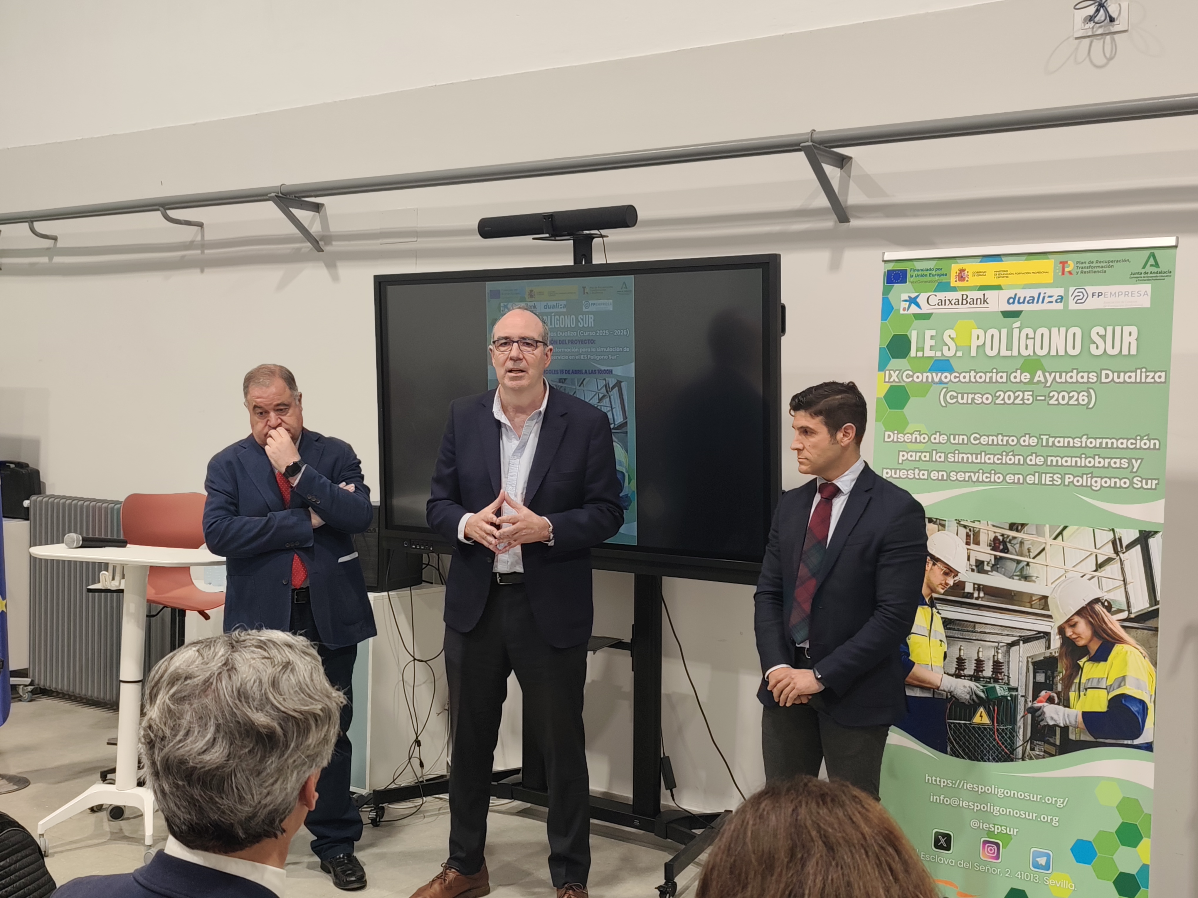El Departamento de Electricidad y Electrónica del IES Polígono Sur, ha presentado un proyecto a la IX Convocatoria de Ayudas Dualiza de CaixaBank (curso 2025-2026), obteniendo financiación para el desarrollo del proyecto “Diseño de un Centro de Transformación para la simulación de maniobras y puesta en servicio en el IES Polígono Sur”.