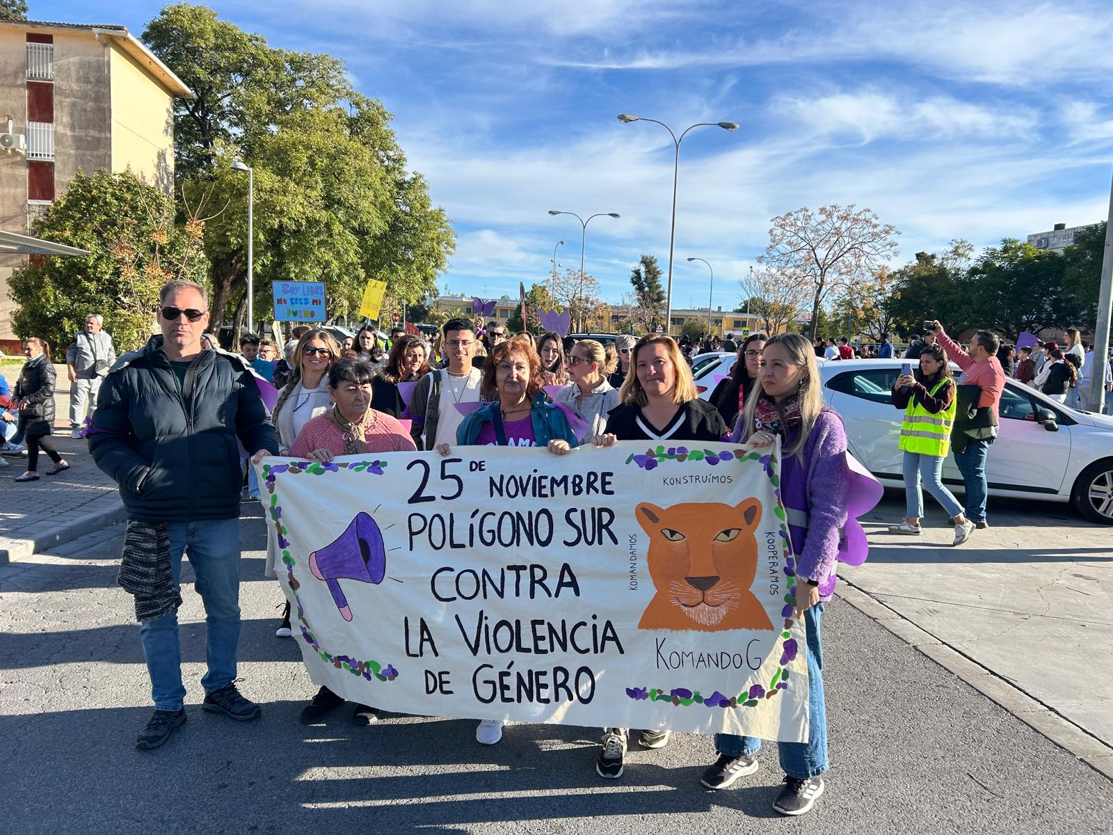 Hoy ha tenido lugar en nuestras calles de polígono sur la Marcha 25N organizada por Komando G ,los centros escolares y entidades, terminando en el centro deportivo La Oliva con la lectura del Manifiesto. Imágenes de la marcha.